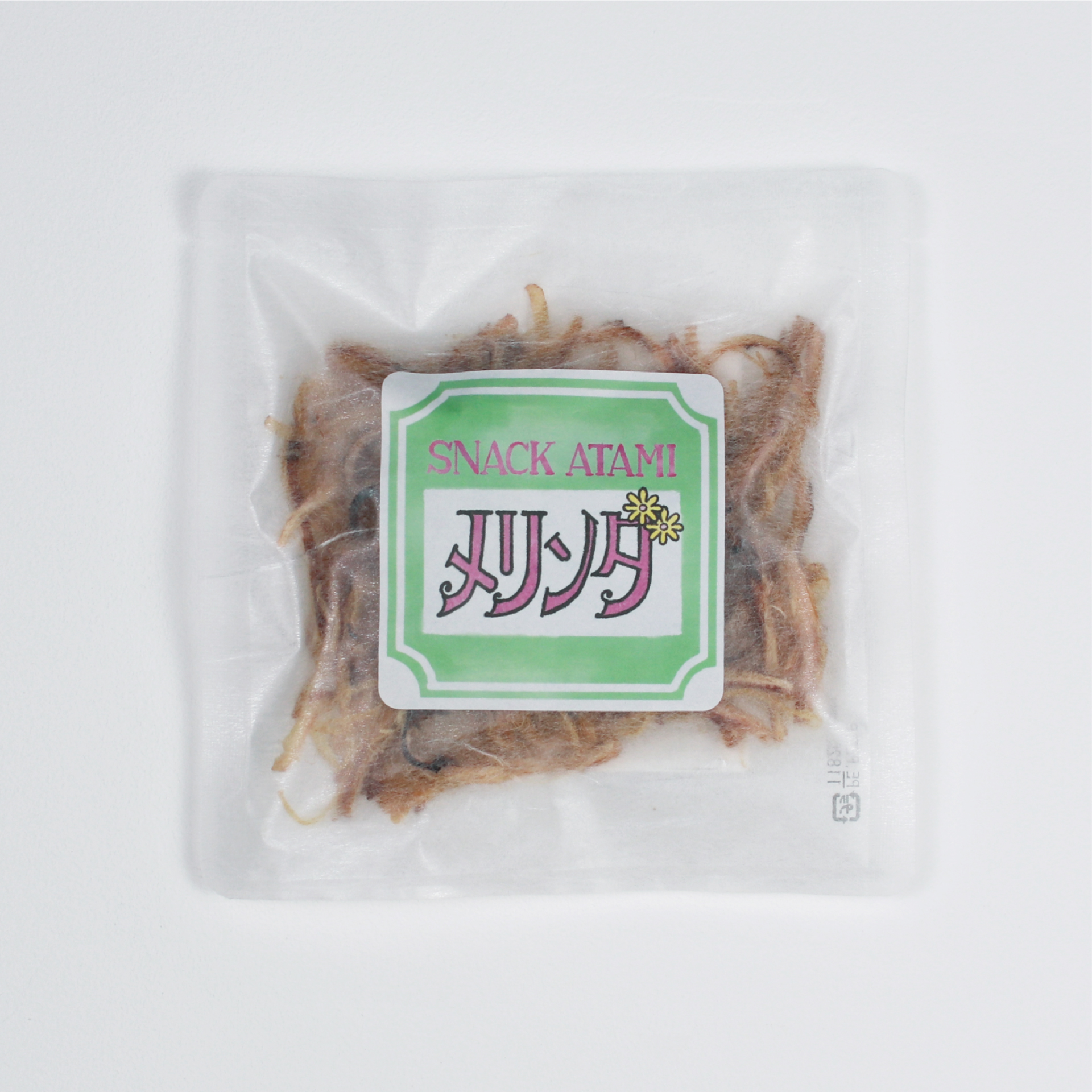 1866年に創業した老舗干物店・あをきの干物が手がける、おつまみ商品「スナック熱海」のパッケージデザインを担当しました。デザインコンセプトは「おしゃれなおつまみギフト」。旅行帰りの新幹線でつまめる軽食として、またはちょっとした手土産として、若者が気軽に手に取りやすいラフなヴィジュアルに仕上げました。